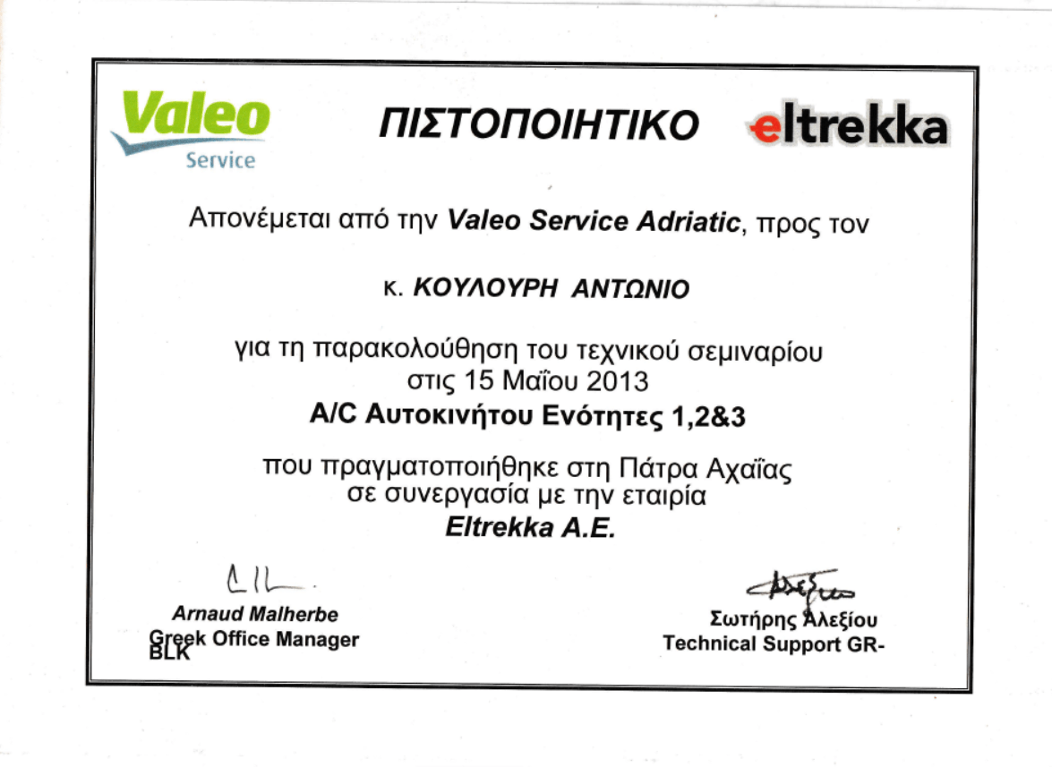 Το συνεργείο επανιδρύθηκε το 2006 από εμένα  και την Μαρία Κουλούρη, μετά την συνταξιοδότηση του πατρός μας, ο οποίος το διατηρούσε από το 1994 έπειτα από την 5ετή υπηρεσία του σαν υπεύθυνος συνεργείου της τότε αντιπροσωπίας στην Πάτρα. Η έναρξη του συνέπεσε με την απόκτηση του πτυχίου μου, από την σχολή των Μηχανολόγων του τμήματος Τεχνολογικών Εφαρμογών του ΤΕΙ Πάτρας και την απόκτηση των αδειών ασκήσεως των επαγγελμάτων του Μηχανολόγου και του Τεχνολόγου Μηχανικού Αυτοκινήτων.