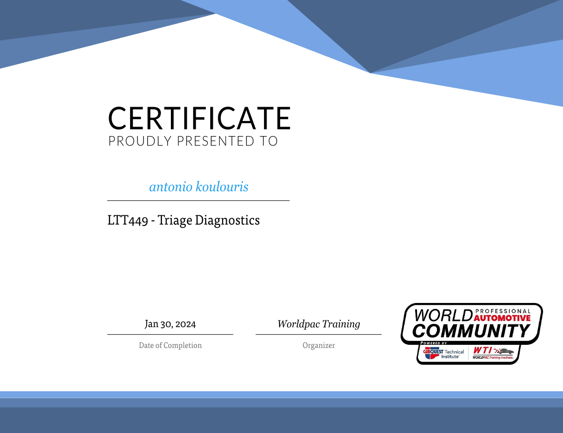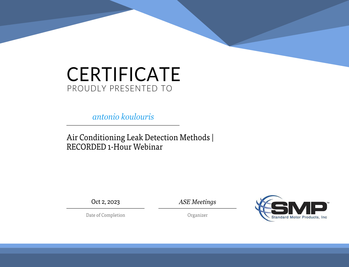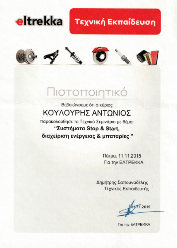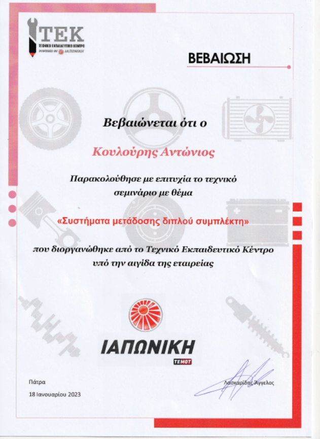 Το 2012 απέκτησα και την άδεια ασκήσεως επαγγέλματος του Τεχνίτη Αερίων Καυσίμων και το 2014 μας χορηγήθηκε και η άδεια συνεργείου αερίων καυσίμων. Το 2021 ,συναισθανόμενοι τις απαιτήσεις αλλά και την ανεπάρκεια της αγοράς στη Δυτική Ελλάδα δημιουργήσαμε την Check&Buy που ειδικεύεται στον έλεγχο μεταχειρισμένων οχημάτων στην περιοχή της Πάτρας. Με πελατολόγιο Πανελλαδικά, και προσφέροντας ποιοτικές αλλά και διαφανείς υπηρεσίες, κατορθώσαμε να ανέλθουμε στην κορυφή των αξιολογήσεων της Google.